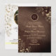 Denna eleganta svarta trämöhippning har en rik trästrukturbakgrund som accentueras med delikat guldfärgad blomstermönsterkonst och ett raffinerat anpassat monogram. I kombination med ett koordinerat foto-svarskort blandar denna uppsättning romantisk vintage-stil med modern funktionalitet.