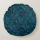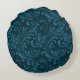 Intrikat mörkt turkost blomsterdamastmönster med symmetriska, virvlande bladmotiv mot en djup bakgrund, som förmedlar elegans och sofistikation.