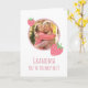 Uttryck kärlek för mormor med ett personlig fotohälsningskort med en söt jordgubbsdesign! Du kan välja att anpassa "Grandma" i ord till ett annat namn ("Nonna", "Nana", "Mamma" osv.). Ett idealiskt kort till ge för Mors dag, farföräldrars dag, födelsedagar och mycket mer med dess pastelldesign och vismpun "du är bären bäst!"