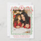 Det här julkortet har en liten årtusendesformad utformning med ett kulligt ram med rött båge och vapensköld överst. Grund har en röd text som säger "God jul". Du kan anpassa dig med namn och ditt första. Baksidan har en samordnande kam rand mönster.