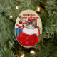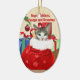En ljuv gåva för morföräldrar till hängningen på deras träd som denna kattunge i en Santa hänger lös lite pip ut på denna färgrika prydnad.