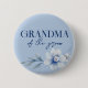 Mormor på Groom Blue Möhippa Pin on Button. Med vacker dammig elegant i skiffer, blå vattenfärgblommor i ljusblå botten. Ta en titt på de andra matchningsknapparna i samlingen för andra viktiga gäster som maid of honor, brud att vara, brudgumm och så vidare!