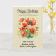 Ett vackert födelsedagskort till mormor, med 'Glad födelsedag' önskan både på framsidan och insidan. Födelsedagskortet har en rustik look och är illustrerat med röda vallmo blommor i en akvarell stil. Perfekt för trädgårdsentusiaster, detta blomsterkort kan anpassas med ditt eget meddelande för en personlig touch.