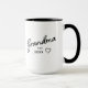 Fira ögonblicket när hon blir mormor med en ren design i svart på vitt med hennes nya titel, en söt hjärtaccent och ett anpassningsbart grundande år. Det är ett enkelt och hjärtligt sätt att dela nyheten - oavsett om du planerar en överraskningsavslöjande eller markerar en minnesvärd händelse som hon kommer minnas varje gång hon häller upp en kopp. Designen visas på båda sidor för god synlighet och färgerna kan anpassas för att matcha din underrättelsestil. En varm, modern souvenir till den senaste medlemmen i mormorsklubben.