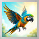 Den här åtgärdspappade designen har en levande papegoja mitt under flygningen, där vingar är brett mot ett tydligt himmel. En perfekt för dem som love birds och flyget.
