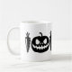 En fläckig och minimalistisk Halloween-temad konstruktion med en karvpumpad pumpa med ett sinister som maler ansikte i mitten. Pumpdockans uttryck är eerie, med ihålig ögon, en taggig mun och liten nos hål. På vardera sidan av pumpen finns två morötter, som var och en är stiliserad med en enkel och ren kontur, och som tillför en unik grönsaksknapp till Halloween-temat. Konstruktionen är svart och betonar kontrasten och enkelheten, perfekten för Halloween-dekorationer eller -kläder.