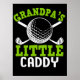 Denna lysande golftematiska illustration är perfekt för en stolt farfar och hans barnbarn. Den översta texten "GRANDPA'S" visas i en levande, något störd grönt. En stor golf boll är framträdande i mitten, med två korsade golfklubbar bakom sig, allt i vitt. Under golf boll finns "LITTLE" i en passande grönt, följt av "CADDY" i vitt. Den övergripande utformningen är ren och djärv mot en solid svart bakgrund, och firar den speciella bindningen som formas på golfbanan.
