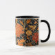 Cray, en vintage av William Morris-typ som kontrasterar mot blommönster av djup orange, svart och vitt