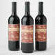 Morris Inspired Lily Flower Botanical Red Textile Vinflaska Etikett