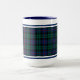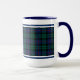 Kaffe mugg med tartan för Klan Morrison och dess septer, inklusive Gilmour och MacBrieve. Skogskaraktär, mörkens royal blått och svart skotsk plaid från 1880, med ljusröda accenter.