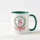 Juldagen i mugg har en krans med en röd monogram inledningsvis. Du kan anpassa dig med din ursprungliga version.