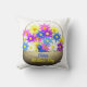 Dekorativ kudde med min ursprungliga utformning av en söt basket av blommor och en liten blå fågel för Mors dag. Anpassadet säger "Lycklig Mors dag".