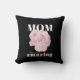 Den här Mors dag-presentkudden har "Mamma du är fantastisk" i ett modernt typografi stil på svart bakgrund. I mitten finns en stor vattenfärgsblomning i rosa och i motsatt riktning är en mindre enskild blomma.