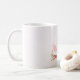 Mors dag mugg med Mors dag citattecken omgivna av blommigt bouquets mot polka rosa bakgrund.