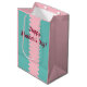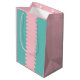 Söt teal och bubblegum rosa Mors dag presentsäck. Den här fina väskan står på sin egen. Och det är också en del av vår "Mors dag Boutique"-samling. Allt som behövs på en plats för Mamma speciellare dag - två specialtillverkade keepsaksgåvor - välj en eller båda, med matchande och samordnande Mors dag presentväska i dina storleksval, vacker presentväska och två söt rosa- och tealkort att välja mellan - ett redo att följa med din egen text om du vill, eller ett där du kan ladda upp ett foto på kortet om du vill. Den här presentpåsen är utformad med en mall som gör det lättare att byta ord om du vill - till exempel "I kärlek you, Mamma!"