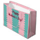 Söt teal och bubblegum rosa Mors dag större presentväska. Den här fina väskan står på sin egen. Och det är också en del av vår "Mors dag Boutique"-samling. Allt som behövs på en plats för Mamma speciellare dag - två specialtillverkade keepsaksgåvor - välj en eller båda, med matchande och samordnande Mors dag presentväska i dina storleksval, vacker presentväska och två söt rosa- och tealkort att välja mellan - ett redo att följa med din egen text om du vill, eller ett där du kan ladda upp ett foto på kortet om du vill. Den här större presentpåsen är utformad med en mall som gör det lättare att byta ord om du vill - t.ex. "I kärlek you, Mamma!" OBS: Vi mamma vill inte nödvändigtvis ha stora gåvor, så låt inte valet av den mindre storleka bli ett problem!