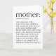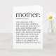 Överraska mamma i Mors dag med detta unika och meningsfulla hälsningskort. På kortets framsida finns en definition av mor i fet stil, trendig. Insidan av kortet innehåller ett meddelande som är anpassade. Om du vill ändra texten klickar du bara på "Anpassa den här mallen". Om du vill ha fler Mors dag-kortutformningar eller presentidéer kan du checka ut samlingen eller besöka butiken.