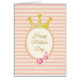 Glad mors dag-drottning-kort med rosa blommor och en krona på toppen av en cirkel. Rosa och ljust beige ränder i bakgrunden. All text kan anpassas.