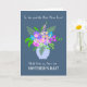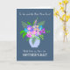 Det här hälsningskortet contemporary blommigt Mors dag för mor har en bukett av rosa, blåblommor och vita blommor i en blek blå vas i en söt bakgrund. Hälsning på framsidan är "Till världens bästa Mamma någonsin"!" i ett vitt handskript högst upp. Under blommornas vas står det "Med mycket kärlek på" och sedan "MORS DAG!" i en dekorativ text. Det inre meddelandet är bara ett förslag och du kan enkelt ändra det eller ta bort det helt om du föredrar ett "tomt inuti"-kort.