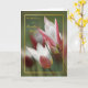 Fotoet på detta mors dagkort är av den rosa damen Jane för rosa- och vitarttulpan mot en mjuk grön bakgrund, med en gräns i gula färger som skuggas för att se likt guld.