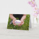 Barn som håller ett gäsägg med Mors dag-meddelande.