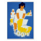 50-talets 50-talets blåvita gult i mitten av århundradet, ett gammaldags vintage-retro mamma mamma mamma Mommies barnvagn baby meddelande om spädbarn i mamma