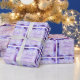 Den vackra pappra inslagningen i Mors dag har den vackra vattenblomman med blått och lila eller lilak färgad blommar. Det här är en underbar blommigt som slår pappert och hon kommer att se en gåva inlindad på Mors dag. Copyright Kathy Henis