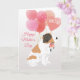 Mors dag Kärlek från din Saint Bernard Hundkort firar din hunds ovillkorliga kärlek till hans hundmamma. Denna glada Saint Bernard Hund kommer med en färgglad knippa ballonger med en speciell hjärtbalong och en söt rosa blomma i munnen. Denna handmålade akvarelldesign är placerad på en mjuk grå gradientbakgrund för att få fram det vita på många av hundarna i denna samling. Insidan av kortet har "mamma"-ballongen på vänster sida och ett meddelande, blomma och en hunds namn. All text är redigerbar genom att använda redigeringsknappen. Ändra meddelandet om du vill och kom ihåg att ändra hundens namn på insidan. Detta kort är också en bra idé till dina vänner som har fyrbenta barn. Du hittar över 30 raser på dessa kort i vår HAPP