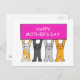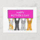 Fyra tecknader kattungar av olika färg, som står upp på tassar. Kattungarna håller upp en banderoll över shock rosa huvuden som säger "Lycklig Mors dag". Bilden ställs in mot en vit bakgrund.
