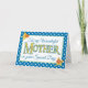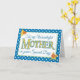 Ett söt Mors dag-hälsningskort, med brev fyllt med en mönster av guldtäckblad, från en handmålad vattenfärgsdesign av Judy Adamson, med vit polka dots på djupt blått. En del av Posh & Painterly 'Daffy-down-Dillies'-samlingen.