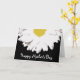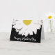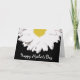 Ett kort med en illustration av en halv daisy som går uppifrån över en svart bakgrund. I vittexten i grund står det "Lycklig Mors dag". Tom inuti.