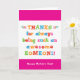 Du kallar mor Eomeoni, inte Mamma. (Eomeoni elak mor på koreanska.) Föreställ er hur upphetsad Eomeoni kommer att bli att få ett särskilt riktat kort till henne i Mors dag! Din Eomeoni kommer också att kärlek detta korts roligt, färgstarka textbaserade utformning som säger: "Tack för att du alltid är en sådan fantastisk Eomeoni! Lycklig Mors dag!" Gör det här anpassadet! Klicka på "Redigera design", "Inside Grund/Höger: Text & Bilder", "Text" och "Lägg till text" för att skriva din egen anpassningsbar, personlig meddelande till Eomeoni inuti!