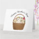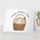 Ett kort för mors dag med en illustration av tre söta valpar av rasen Golden Retriever som sitter i en blomsterkorg omgivna av vackra blommor. Designen skapar en varm och kärleksfull atmosfär och framkallar känslor av ömhet och tillgivenhet. De rena och oskyldiga valparna förstärker den familjära känslan och gör detta kort till ett perfekt val för mors dag. Det rekommenderas särskilt för dem som älskar hundar och tillför en extra touch av glädje och charm.