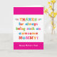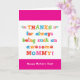 Mamma kommer att kärlek det här Mors dag-kortets roligt, färgstarka textbaserade design som säger: "Tack för att du alltid är en sådan fantastisk Mamma! Lycklig Mors dag!" Gör det här anpassadet! Klicka på "Redigera design", "Inuti Grund/Höger: Text & Bilder", "Text" och "Lägg till text" för att skriva din egen anpassningsbar, personlig meddelande till Mamman inuti!