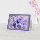 Fin kombination av tre lilor Stryk på framsidan av kortet för din syster på Mors dag. Kortet har också en lavender grunge-bakgrund och en lila gräns. På kortets framsida finns ord "Lycklig Mors dag Sister".