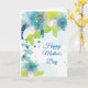 Föreställ dig att det nya mors dag--kortet med färgen öppnas i blommigt av ditt speciella mor med det speciella mors dag-meddelandet inuti, Hues of Blues & Grönts på en skarp vit bakgrund. Hälsning tryckt inuti.