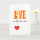 Denna skarpa moderna utformning har KÄRLEK i orange-gult färgad huvudstad brev med en mönster av vita blommor, och det finns ett rödaktigt hjärta hängande från L. Du kan anpassa detta kort genom att redigera texten på hjärtat och redigera även meddelandet inuti. Eller om du vill kan du bara använda det som föreslås "Till världens bästa mor". Skicka KÄRLEK på Mors dag.