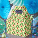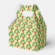 Den här fantastisk-mönstrade förmånslådan har en digital konstbild av en serie löv från ett hemmaverk som heter Monstera, även kallat Swiss Cheese Plant. Löven är mörk grönt och lobbyister, och vissa har hål i dem. Växtkrukan är röd och innehåller lite brun jord.