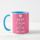 Mors dag Mugg | Behålla Lugn och kärlek mamma. Cute Behålla lugn och fortsätt parodi kopp med lite hjärta. Rosa och blått färg.