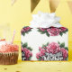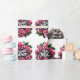 Ett cirkulärt ram med rosa ros och grönt löv.