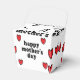 Svartvit lycklig mors dag med rött hjärta på vit bakgrund.