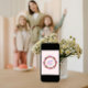 Ett ljust rosa hälsningskort med ro-blommigtens andedräkt som önskar mor ett Lycklig Mors dag!