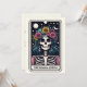 Fira mamman som är djupt uttrycksfull, vacker och den absoluta mittpunkten med "DRAMADROTTNINGEN" Mors dag Tarotkort! Framsidan visar en fängslande illustration av en skelettfigur prydd med en frodig blomsterkrona av rosor och prästkragar, och flödande blont hår, allt mot en kosmisk natthimmel. Denna design förkroppsligar perfekt en unik mammas livliga personlighet, skönhet och känslomässiga djup.