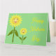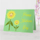 Denna fantastiska mormorsdagskort har en grafisk design med bilden av en vacker gul solros med grön stjälk och blad och ljusgula solrosor. Mor-solrosen har snälla ögon och ett leende i ansiktet. Det finns en mindre solros bredvid moderblomman och dess blad vidrör barn-solrosens blad och visar kärlek och stöd. En vacker design för alla mödrar på mormorsdagen. Det finns anpassad text på insidan så att du kan anpassa detta kort med ditt eget meddelande.