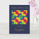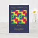 Ett mors dagkort för en dotter, med en ljus och färgrik abstrakt patchworkdesign från kåta-täcke av Judy Adamson.