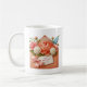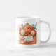 Denna klassiska vita kaffemuggen visas med ett vackert tryck av en blommig mormorsbukett för mors dag.
