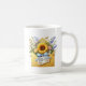Denna klassiska vita kaffemugg visas med ett vackert tryck av en blomsterbukett för mors dag.