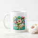Denna klassiska vita kaffemugg visas med ett vackert blommigt tryck för Mors Dag.