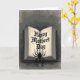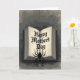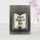 Denna gratulationskort visar en öppen, gammal bok centrerad mot en dämpad, texturerad grå bakgrund, med ett mörkt omslag och varma, sepiafärgade sidor som lyser mjukt inifrån. Tvärs över den krämfärgade uppslaget syns meddelandet "Glad Mors Dag" i utsmyckad svart text, framträdande placerad i mitten som en hemlig lapp inklämd i en kär minnessak ❤️. Nära den nedre delen av de öppna sidorna sitter ett stort mångbenigt spindeldjur i djup skugga, vars orörlighet ger en djärv kontrast till den milda hälsningen. Ovanför boken hänger ett ömtåligt spindelnät från en tunn tråd, och dess fina linjer känns som en tyst förbindelse som sträcker sig mellan orden och varelsen. De begränsade färgerna – kol, askgrått och antikt vitt – ger scenen en gammaldags biblioteksstämning, där tillgivenhet och mystik delar samma utrymme 🌼. Ljus tycks stiga upp från sidorna och fånga den grova pappersstrukturen, vilket får de mörka formerna att