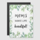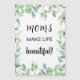 Omfamna kärnan av moderns kärlek med vår förtrollande design för mors dag. Den visar en fängslande akvarelldesign som framhäver den känsliga skönheten hos lövverk runt det hjärtliga budskapet "Mammor gör livet vackert". Denna bild är ett bevis på den värme och glädje som mödrar ger våra liv. Med sin unika blandning av visuell elegans och hjärtliga ord är den den perfekta hyllningen för att uttrycka tacksamhet och fira den underbara och glada kärleken hos en mamma. Dela i tillfället skönhet med denna meningsfulla produkt för mors dag.